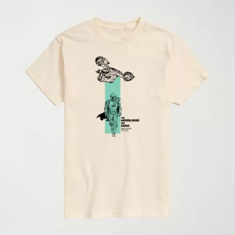 Novelty The Mandalorian And Grogu Razor Crest Ship Beam Mens Crew Neck Short Sleeve Regular Fit Baby Yoda Star Wars Graphic T-Shirt