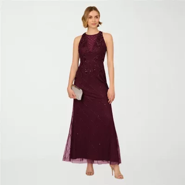 Papell Boutique Womens Beaded Embellished Sleeveless Evening Gown