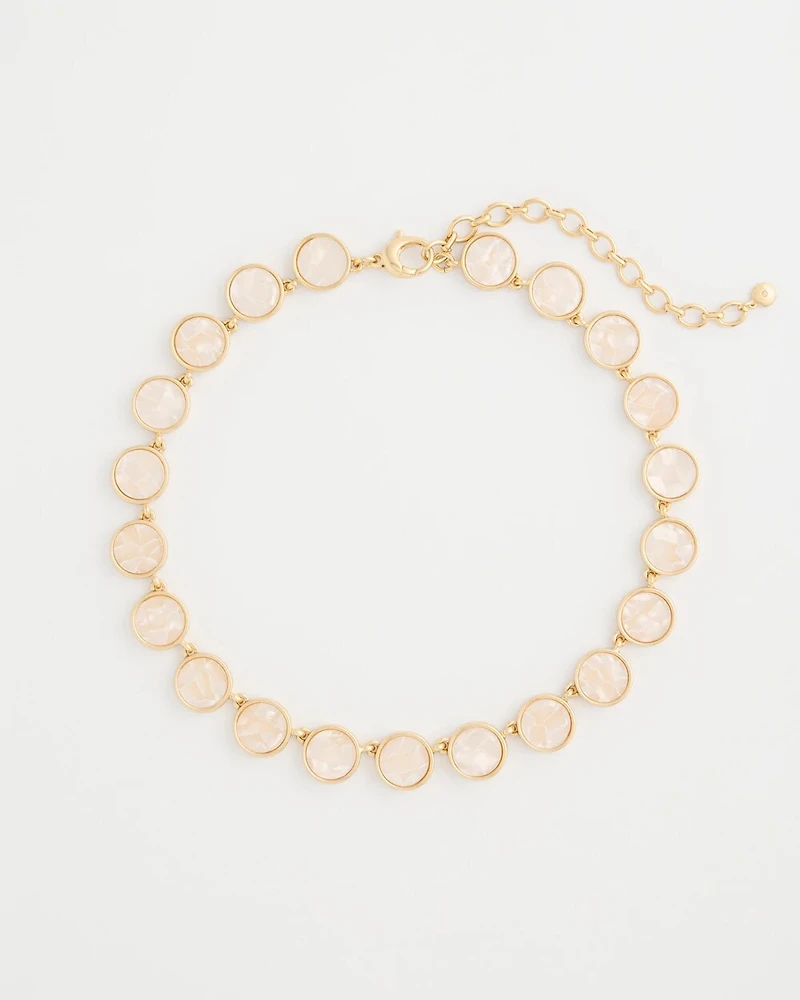 Debuting as part of our Treasure Cove Gold Collection, this necklace features rounded pearlescent charms forming a collar necklace.