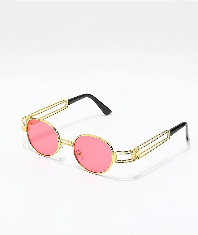 Petals and Peacocks Water Drop Pink & Gold Sunglasses