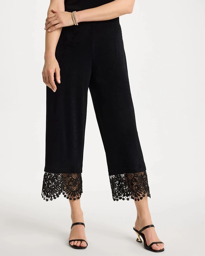 Our Travelers™ Lace Trim Cropped Pants feature our wrinkle-resistant sustainable Naia fabric. Designed in an elongating, wide-leg silhouette with fashionable lace trim at the hems. They're clean-lined, never wrinkle, and look flawless wherever you wear them.