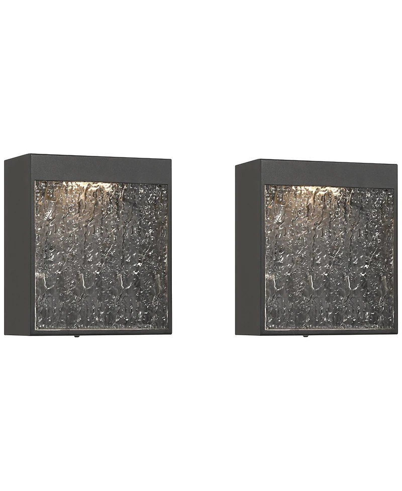 Ready for all weather, the set of two Sofia outdoor Led wall lights is presented by the Possini Euro Design brand, perfect for bringing understated modern charm to your home's exterior. This black finish design boasts a hammered glass cover, creating a rainfall-like effect, adding to the overall beauty of your home. A built-in Led module illuminated with energy-efficient lighting. The Sofia outdoor wall light is wet location rated for outdoor use.