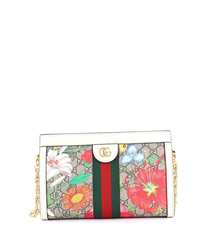 Pre-Owned Gucci Small Ophidia Chain Shoulder Bag Flora Gg Coated Canvas