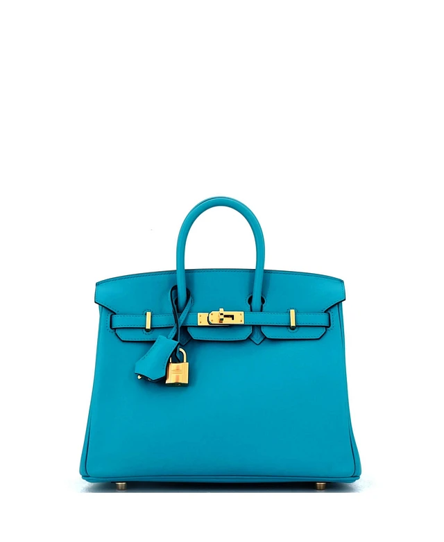 Pre-Owned Hermes Birkin 25 Handbag Blue Swift with Gold Hardware