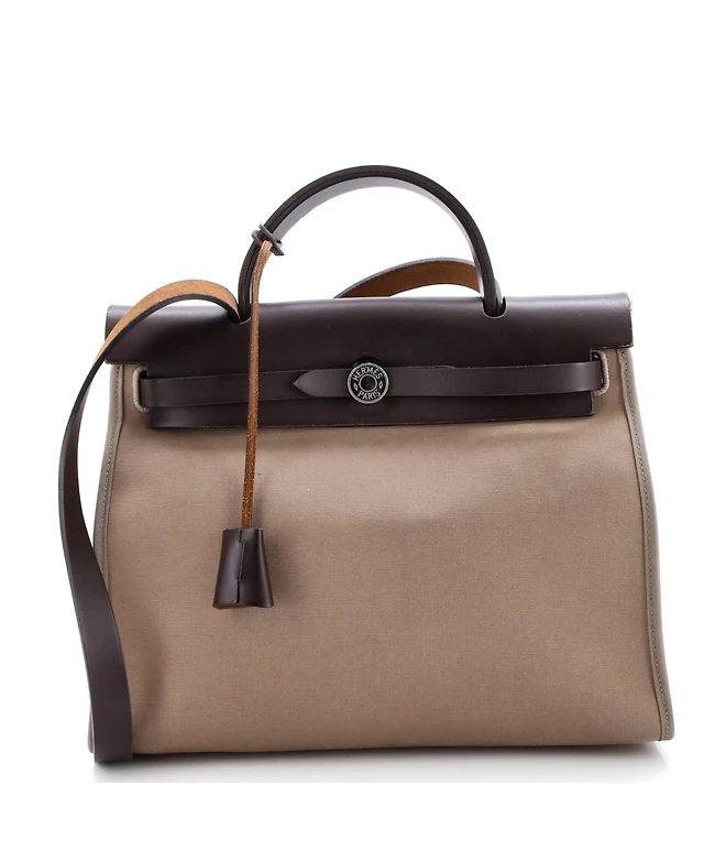 Pre-Owned HERMES 31 Herbag Zip Verso Leather and Toile