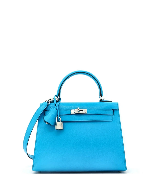 Pre-Owned HERMES Kelly 20 Handbag Blue Box Calf with Palladium Hardware