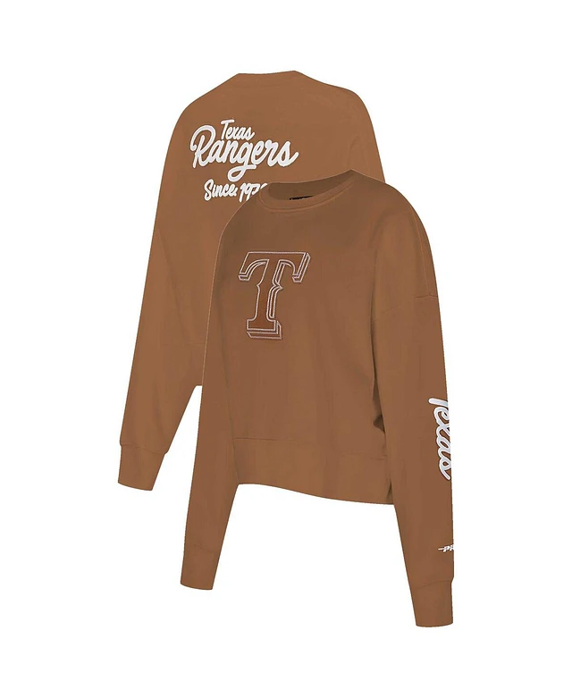 Pro Standard Women's Brown Texas Rangers Paint The City Pullover Cropped Sweatshirt