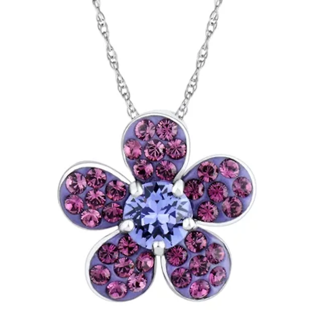Purple Crystal Sterling Silver Flower Pendant Necklace