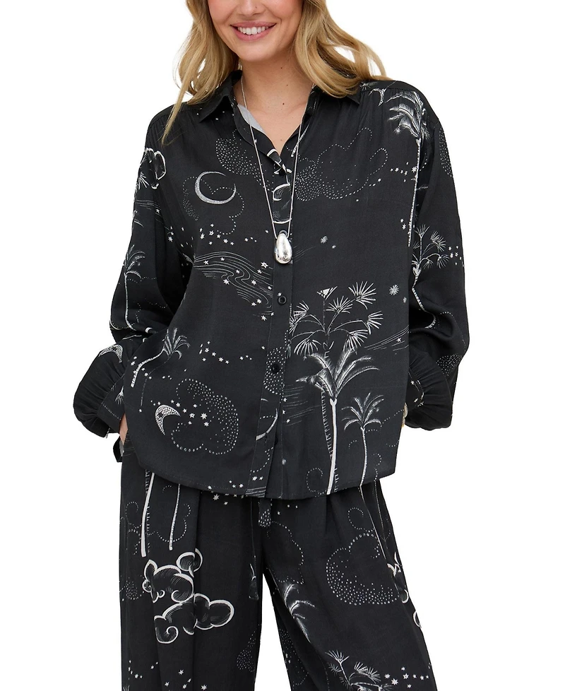 Raffya Women's Palm Button Down Print Shirt