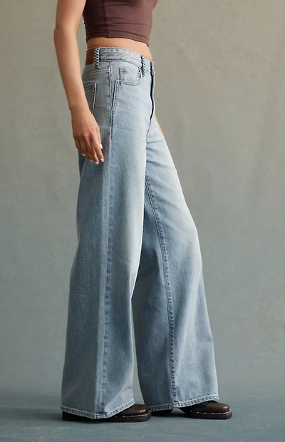 RARE DNM EDIT Light Indigo Pearl & Rhinestone Low Rise Baggy Jeans