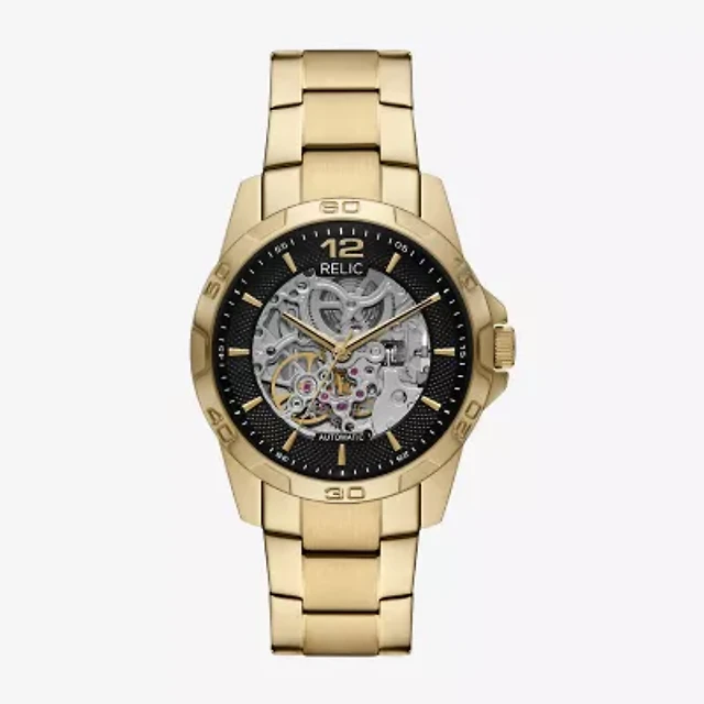 Relic By Fossil Mens Automatic Gold Tone Stainless Steel Bracelet Watch Zr16033