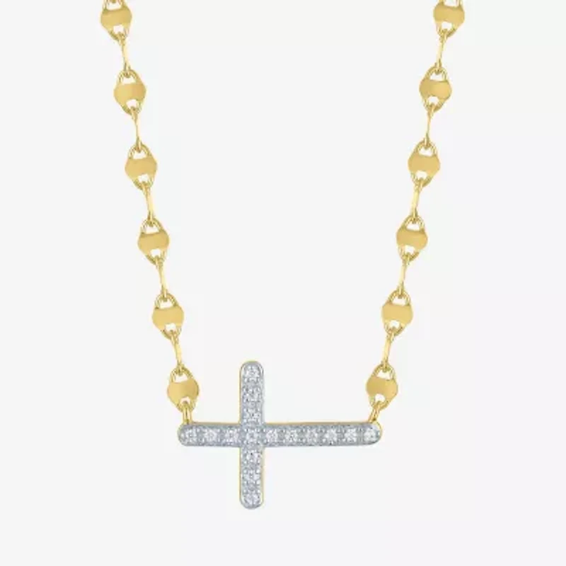 Religious Jewelry Yes, Please! Cross (G-H /Si2-I1) Womens Diamond Accent Lab Grown White Diamond Pure Silver Over Brass Cross 18 Inch Pendant Necklace