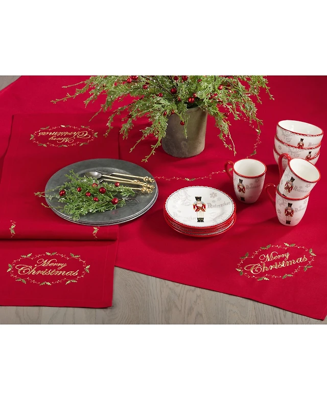 Saro Lifestyle Merry Christmas Embroidered Holiday Table Runner, 14" x 72"