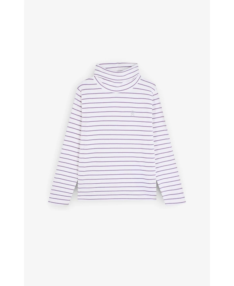 Striped T-shirt made of 100% cotton and long sleeves and turn-down collar