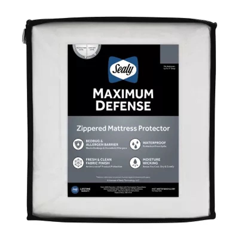 Sealy Bed Bug Defense Mattress Protector delivers the clean, healthy night's sleep that we all deserve. Featuring premium materials and an expertly designed construction, Bed Bug Defense prevents 99.9% of unhealthy household allergens, like dust mites, pollen, and pet dander, from collecting in your mattress. With a soft waterproof layer to protect from spills and stains, Bed Bug Defense also includes specialized seams and zippers making it impenetrable to bed bugs. Together with a moisture wicking finish to keep you cool and dry, machine washability, and a lifetime warranty, Bed Bug Defense offers unmatched comfort, quality, convenience, and value for you and your family.