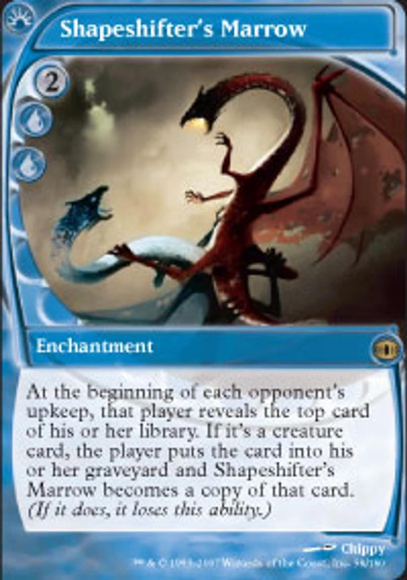 the player puts the card into his or her graveyard and Shapeshifter's Marrow becomes a copy of that card. (If it does