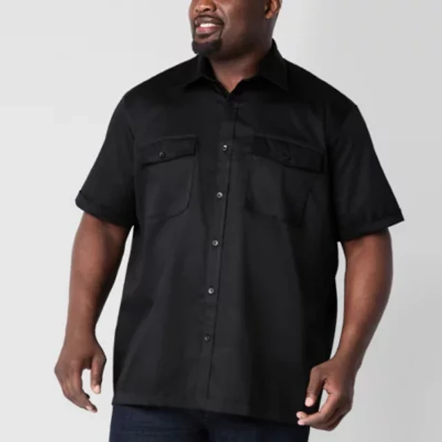 Shaquille O'Neal XLG™ Satin Utility Mens Short Sleeve Regular Fit Big and Tall Button-Down Shirt