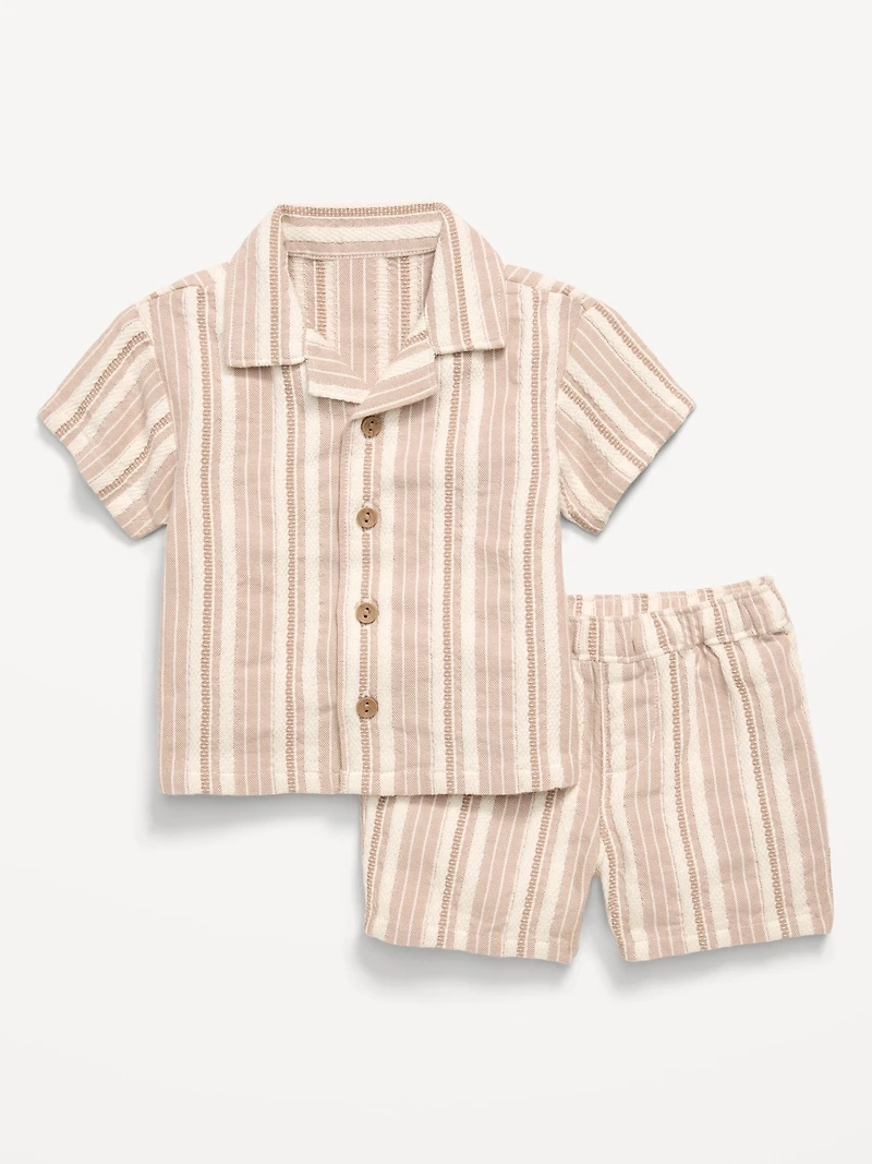 Short-Sleeve Textured Striped Shirt and Shorts Set for Baby in San Juan, PR