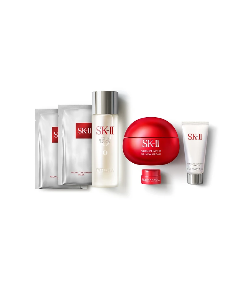 Support aging-concerned skin with this Sk-ii Anti-Aging Set, featuring the iconic Essence, mini cleanser, mini cream, mini eye cream, and sheet masks. This curated collection helps hydrate skin and improve the appearance of smoothness and radiance for a more refreshed, youthful-looking complexion.