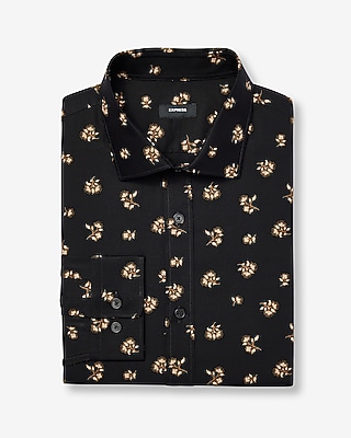 Slim Dot Floral Cotton Stretch Spread Collar 1MX Dress Shirt
