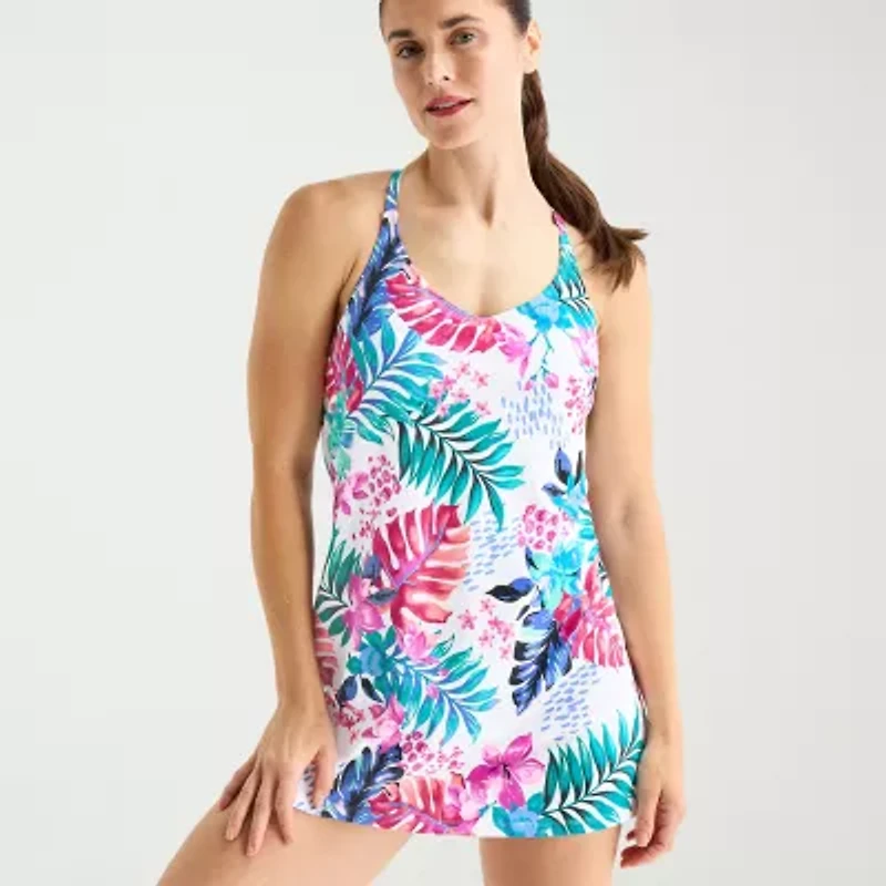 Sonnet Shores Womens Tropical Leaf Swim Dress in San Juan, PR