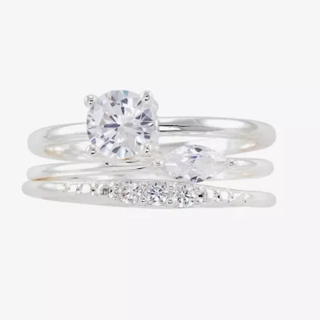 Sparkle Allure Womens Cubic Zirconia Pure Silver Over Brass Ring Set