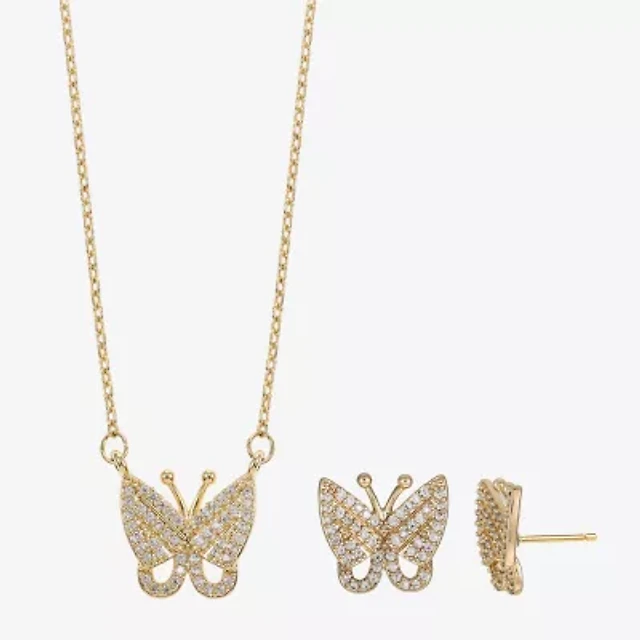 Sparkle Allure Womens Cubic Zirconia 14K Gold Over Brass Butterfly 2-pc. Jewelry Set