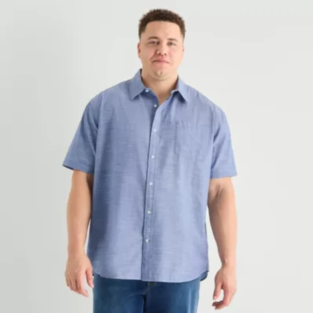 St. John's Bay Chambray Mens Short Sleeve Classic Fit Big and Tall Button-Down Shirt