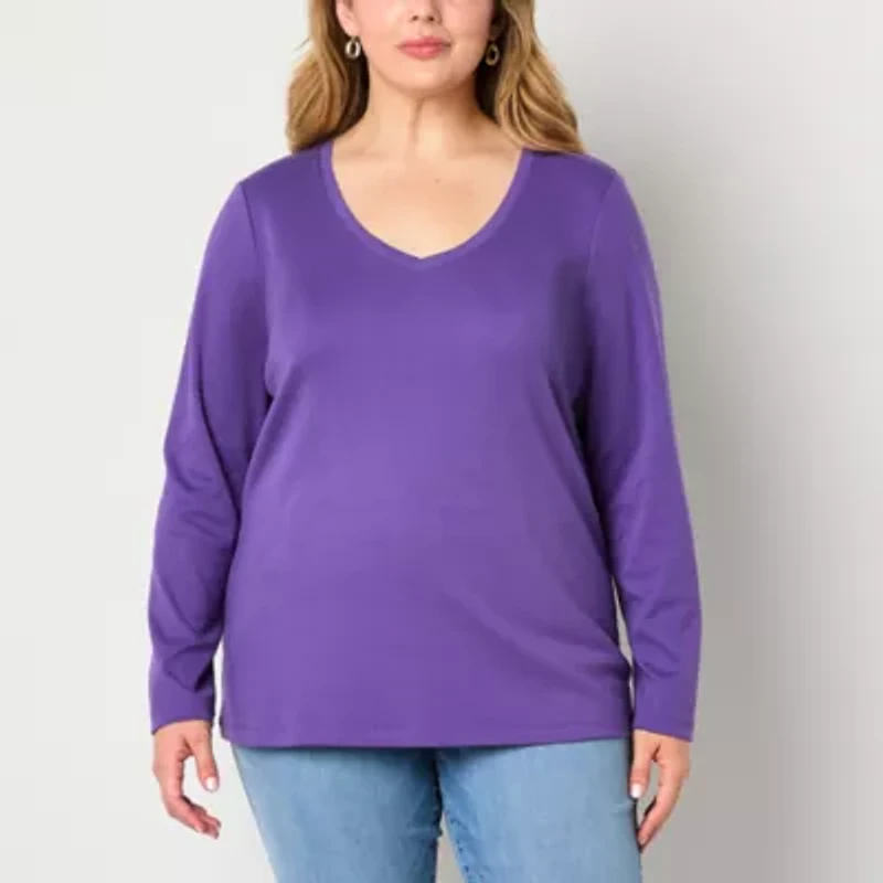 St. John's Bay Womens Plus V Neck Long Sleeve T-Shirt