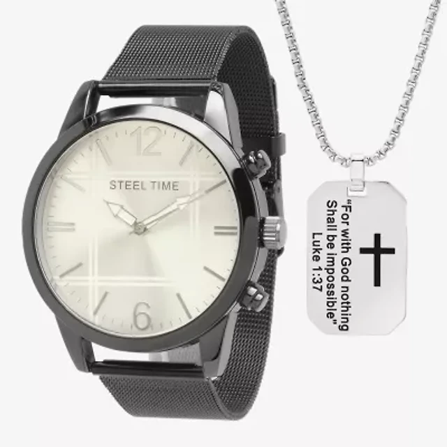 Steeltime Mens Black Stainless Steel 2-pc. Watch Boxed Set 879005965011