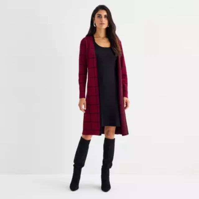 Studio 1 Womens Long Sleeve Windowpane Faux-Jacket Sweater Dress