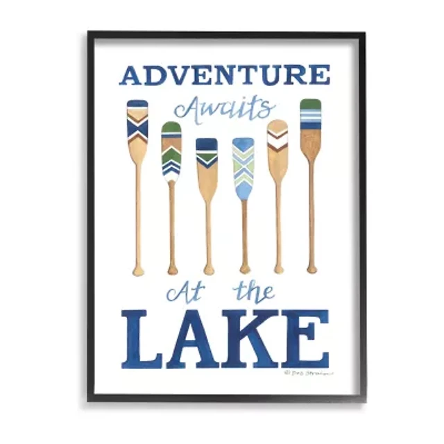 Stupell Industries Adventure Awaits At Lake Oars Phrase Framed Print