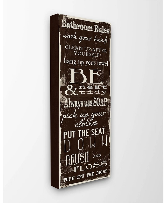 Stupell Industries Bathroom Rules Chocolate White Canvas Wall Art, 10" x 24"