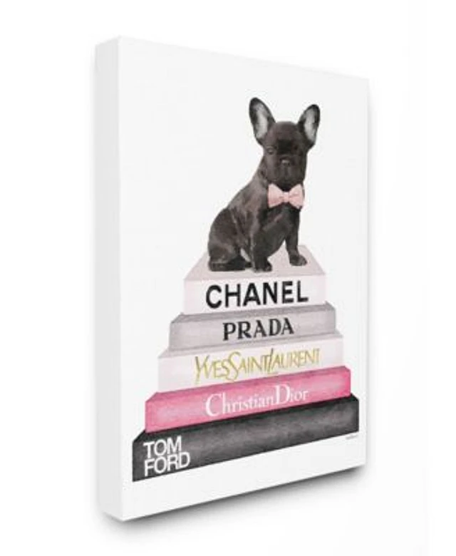 Stupell Industries Book Stack Fashion French Bulldog Canvas Wall Art, 16" x 20"