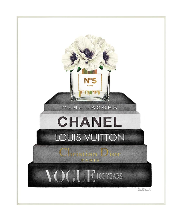Stupell Industries Fashion Designer Flower Bookstack Black White Watercolor Wall Plaque Art Collection By Amanda Greenwood