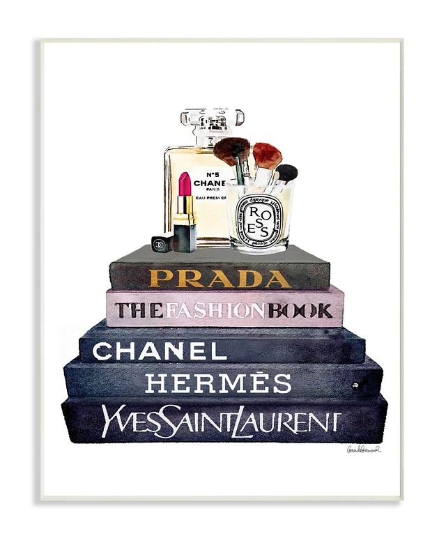 Stupell Industries Book Stack Perfume Brushes Glam Fashion Watercolor Wall Plaque Art 10" L x 0.5" W x 15" H