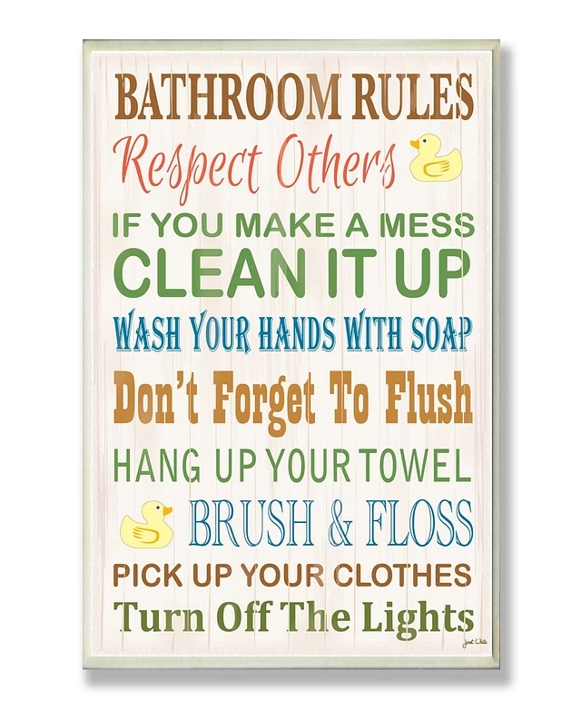 Stupell Industries Home Decor Bathroom Rules Typography Rubber Ducky Bathroom Wall Plaque Art, 12.5" x 18.5"