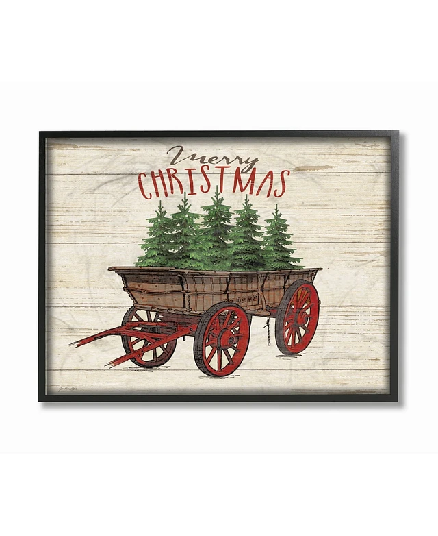 Stupell Industries Merry Christmas Tree Wagon Framed Giclee Art, 11" x 14"
