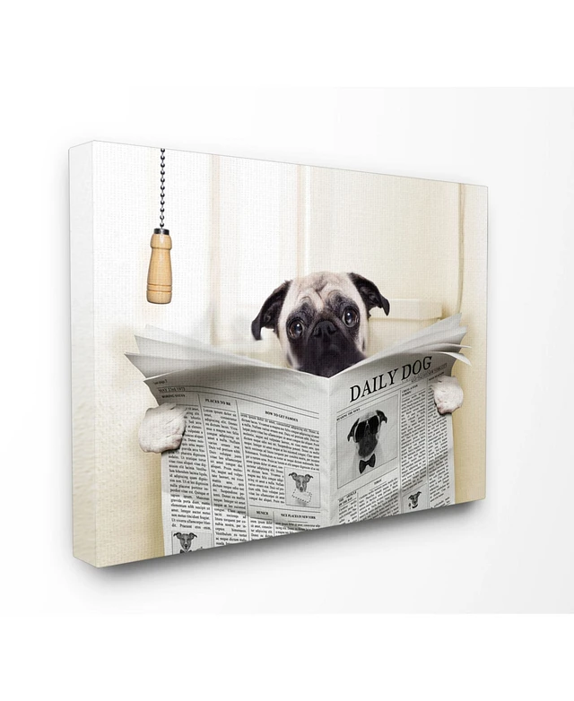 Stupell Industries Pug Reading Newspaper in Bathroom Canvas Wall Art, 16" x 20"