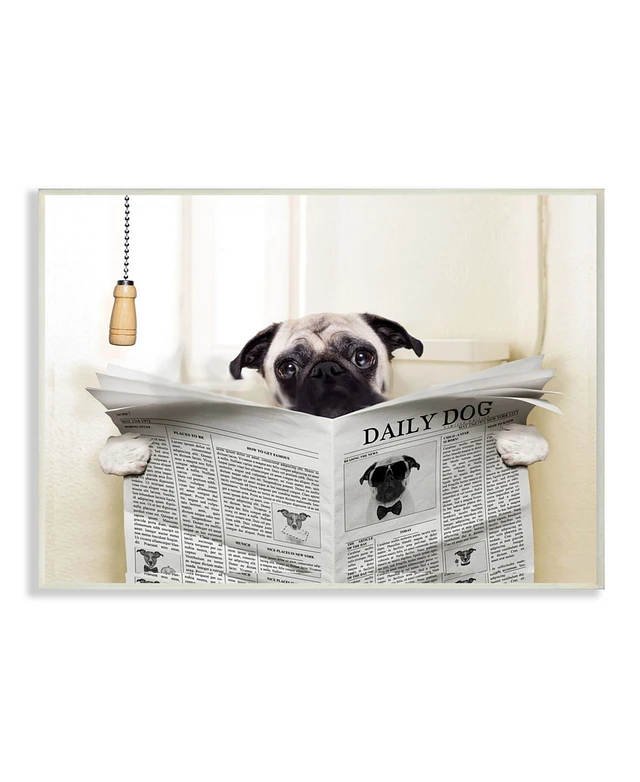 Stupell Industries Pug Reading Newspaper in Bathroom Wall Plaque Art, 10" x 15"