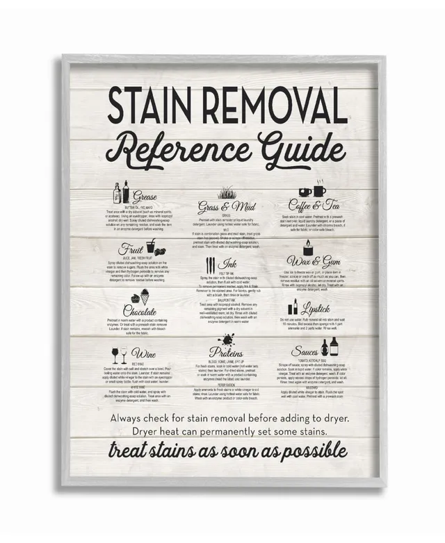 Stupell Industries Stain Removal Reference Guide Typography Gray Framed Texturized Art, 11" L x 14" H