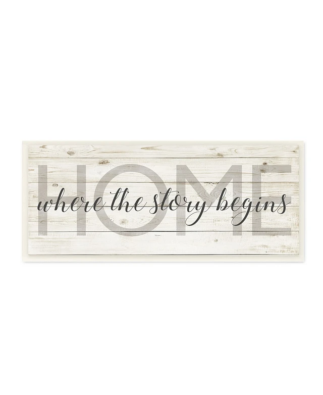 Stupell Industries Story Begins Family Home Inspirational Word Textured Wood Design Wall Plaque Art, 7" x 17"