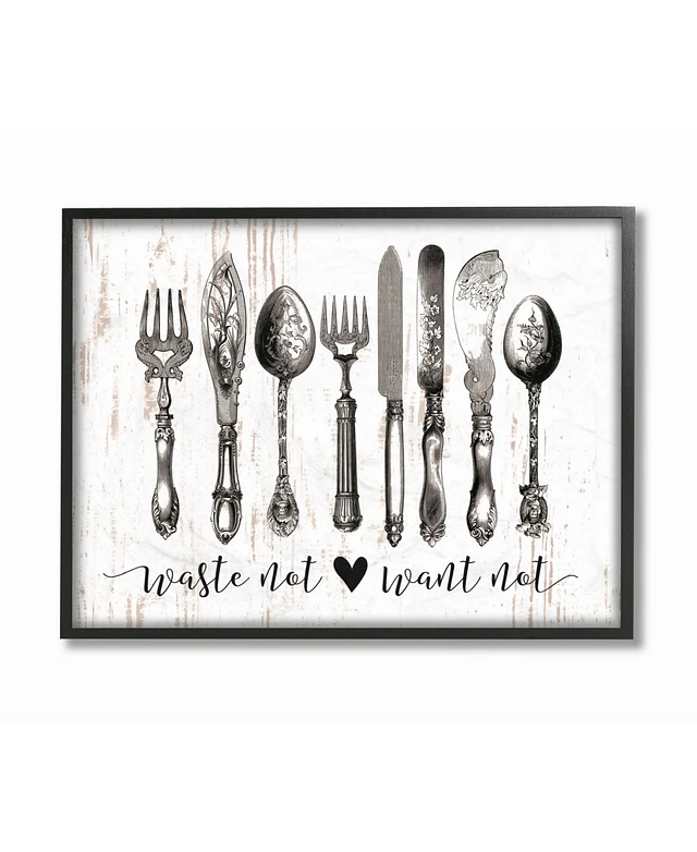 Stupell Industries Waste Not Want Not Silverware Drawing Wall Art Collection