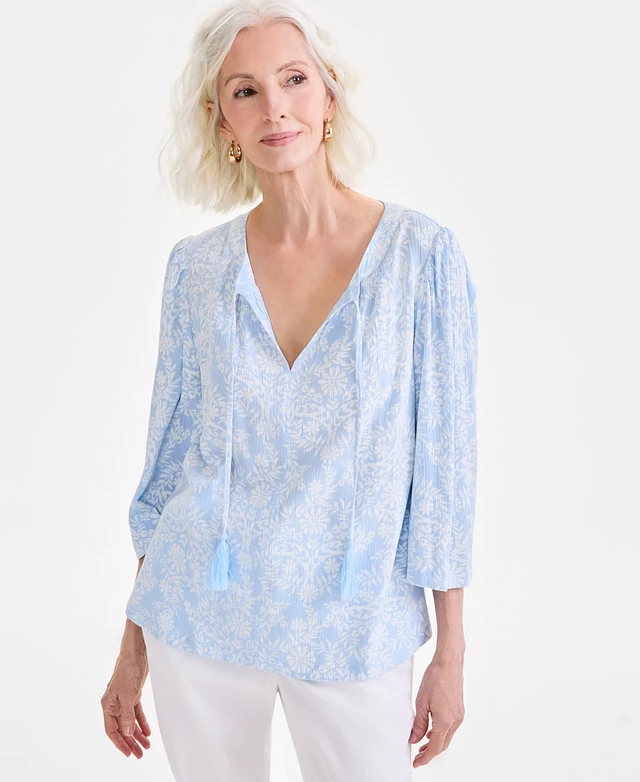 Style & Co Women's Printed Split-Neck 3/4-Sleeve Top, Exclusively at Macy's