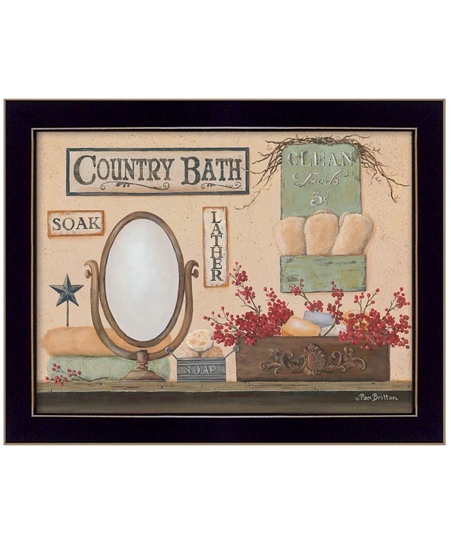 Trendy Decor 4U Country Bath By Pam Britton, Printed Wall Art, Ready to hang, Black Frame, 18" x 14"