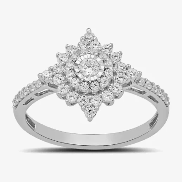(G / Si1-Si2) Womens 1 CT. T.W. Lab Grown White Diamond 10K Gold Side Stone Halo Engagement Ring