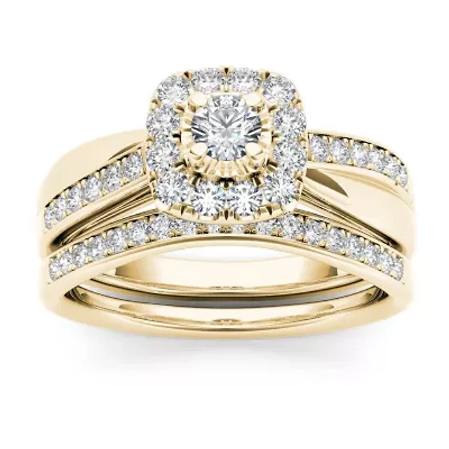 Womens /2 CT. T.W. Natural White Diamond 10K Gold Cushion Halo Bridal Set