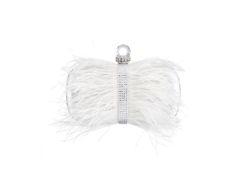 Women's Feather Embellished Minaudiere Clutch