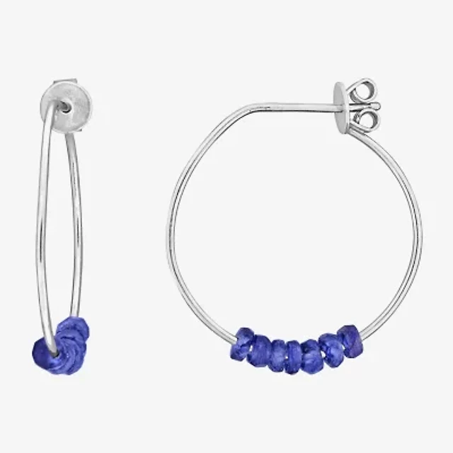Womens Genuine Blue Sapphire Sterling Silver 26mm Hoop Earrings