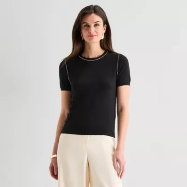Worthington Womens Crew Neck Short Sleeve Pullover Sweater